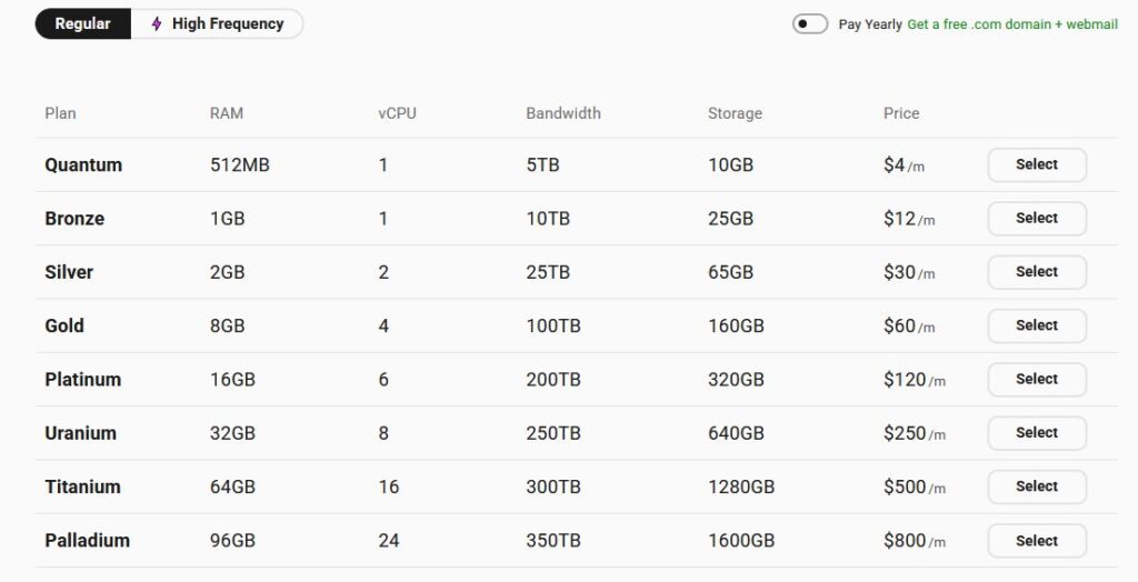 Se vuoi un servizio più economico possiamo offrirti i servizi riportati nella tabella seguente dove lo storage deve includere anche lo spazio del “sistema operativo”. Con queste soluzioni hai un controllo quasi totale sulla piattaforma che ospiterà il tuo sito.
